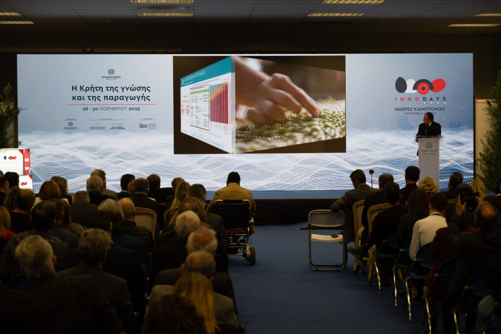 Το Πανεπιστήμιο Κρήτης ολοκληρώνει με θετικά αποτελέσματα τη συμμετοχή του στις Ημέρες Καινοτομίας Περιφέρειας Κρήτης – InnoDays 2025, που πραγματοποιήθηκαν από τις 28 έως 30 Νοεμβρίου στο Διεθνές Εκθεσιακό Κέντρο Κρήτης, στις Γούβες Ηρακλείου. Η έκθεση συγκέντρωσε φορείς της έρευνας, της τεχνολογίας και της επιχειρηματικότητας από ολόκληρη την Κρήτη, δημιουργώντας ένα περιβάλλον ανοιχτού διαλόγου και ανταλλαγής ιδεών.
